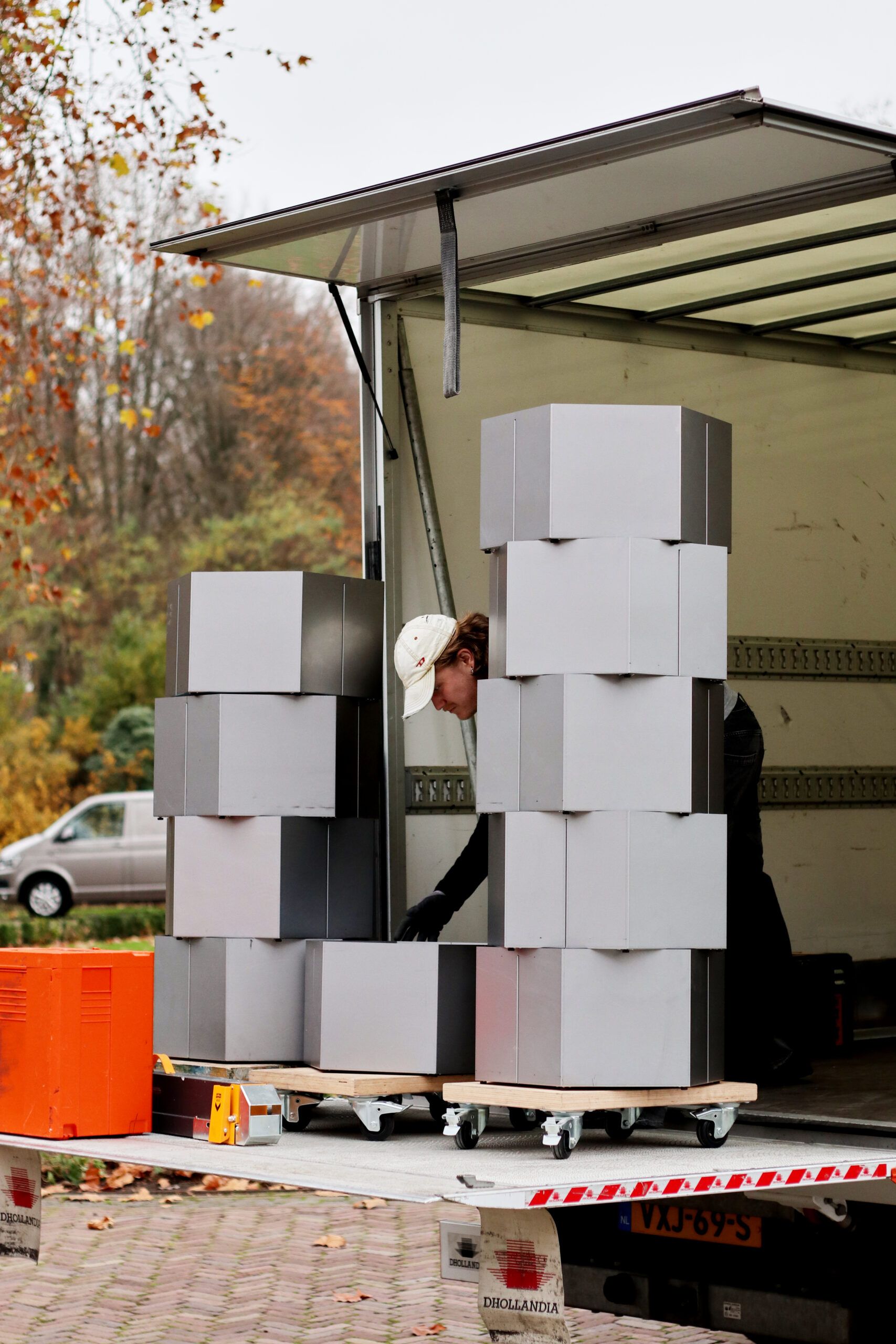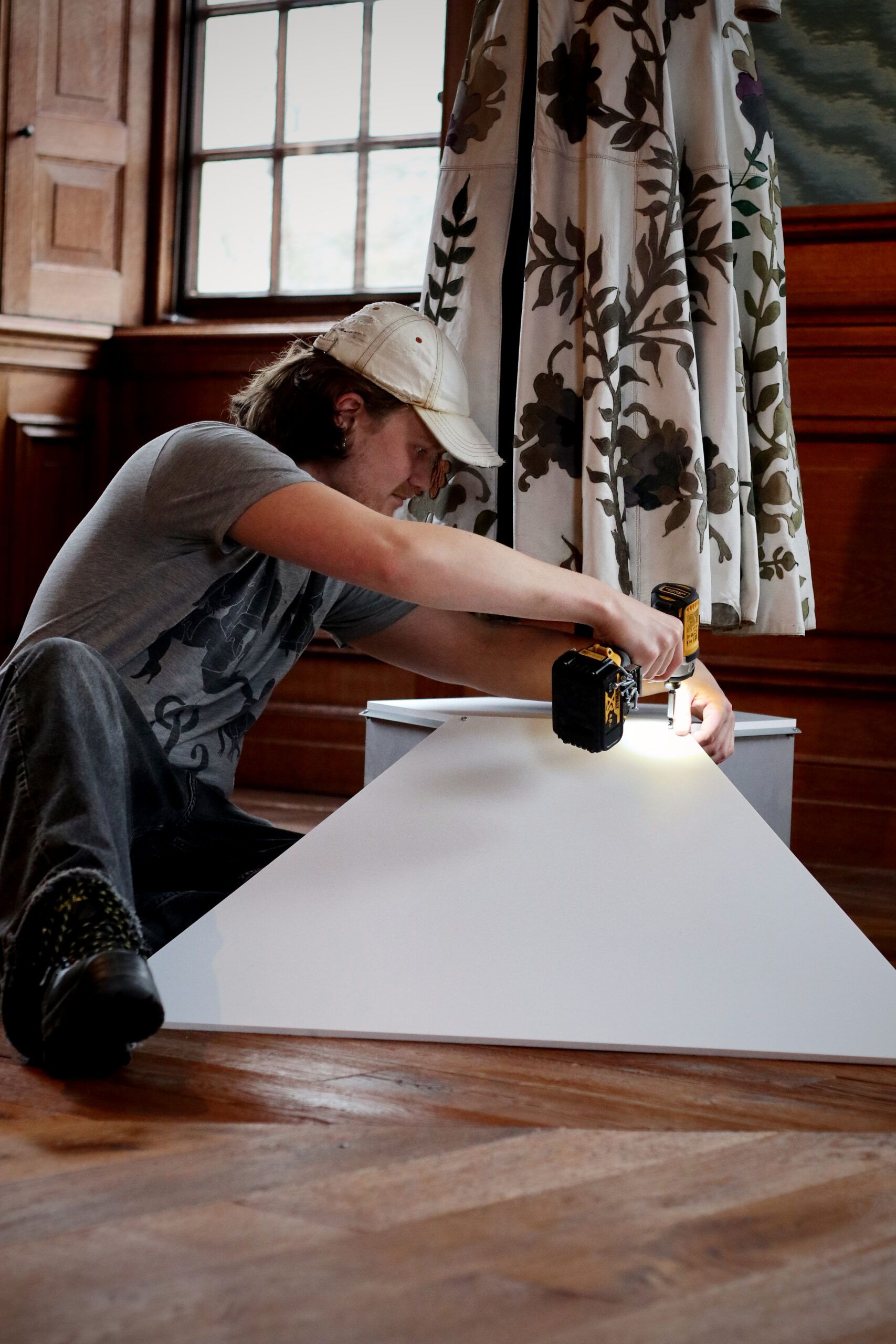 Alles kan in één dag worden opgebouwd en hergebruikt, wat het ontwerp zowel efficiënt als duurzaam maakt. Zo ontstaat een presentatie die de kracht van de ontwerpen volledig laat zien, terwijl de context van het kasteel intact blijft.